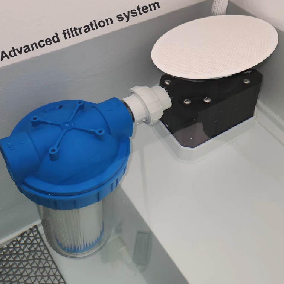 Filtration and sanitation: The active filter keeps impurities and some bacteria away from the water and a powerful ozone generator connected to a timer sanitizes the water and kills 99.9% of bacteria which keeps your water clear for months. Additionally, we sell H2o2 which is the most envirometally friendly chemical-based sanitation method for your cold plunge.
